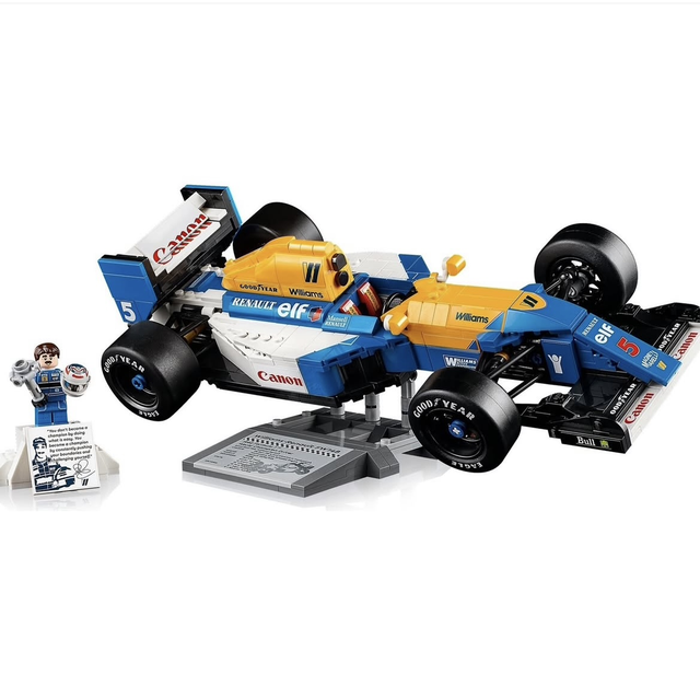 Celebra la storia dell’innovazione della F1® con il kit di costruzione decorativo per la casa e l’ufficio Williams Racing FW14B e Nigel Mansell LEGO® Icons (10353) per adulti.